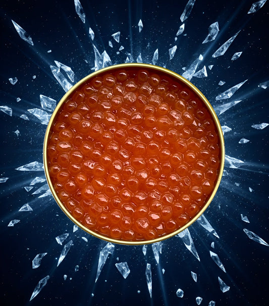 Statt in Flüssigkeit zu schwimmen, wie bei vielen industriellen Produkten, präsentiert sich unser Kaviar in klaren, prallen und glänzenden Perlen, die ein Zeichen echter Frische sind. Keine gummiartige Konsistenz, kein künstlich überlagerter Geschmack – nur purer, unverfälschter Genuss.